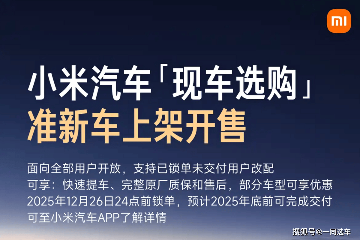 小米汽车近日推出“现车选购”服务,面向全体用户开放,已锁单但尚未交付的客户可申请改配,享受原厂完整质保。此次活动涵盖YU7 Max、SU7 Max、SU7 Ultra三大车型,价格根据配置差异有所浮动,其中YU7 Max优惠力度最大,立减22000元,SU7 Max和SU7 Ultra分别立减8000元和19000元。用户需在12月26日24点前完成锁单,预计2025年底前可提车。 交付周期方面,小米汽车通过二期工厂投产大幅提升产能,现车最快仅需3至6周即可交付。官方数据显示,截至目前,小米汽...